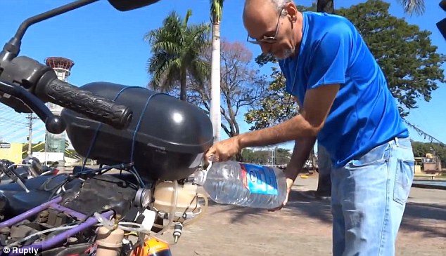 A water-powered motorbike with the ability to travel up to 500 miles on a liter of water is turning heads in Brazil.