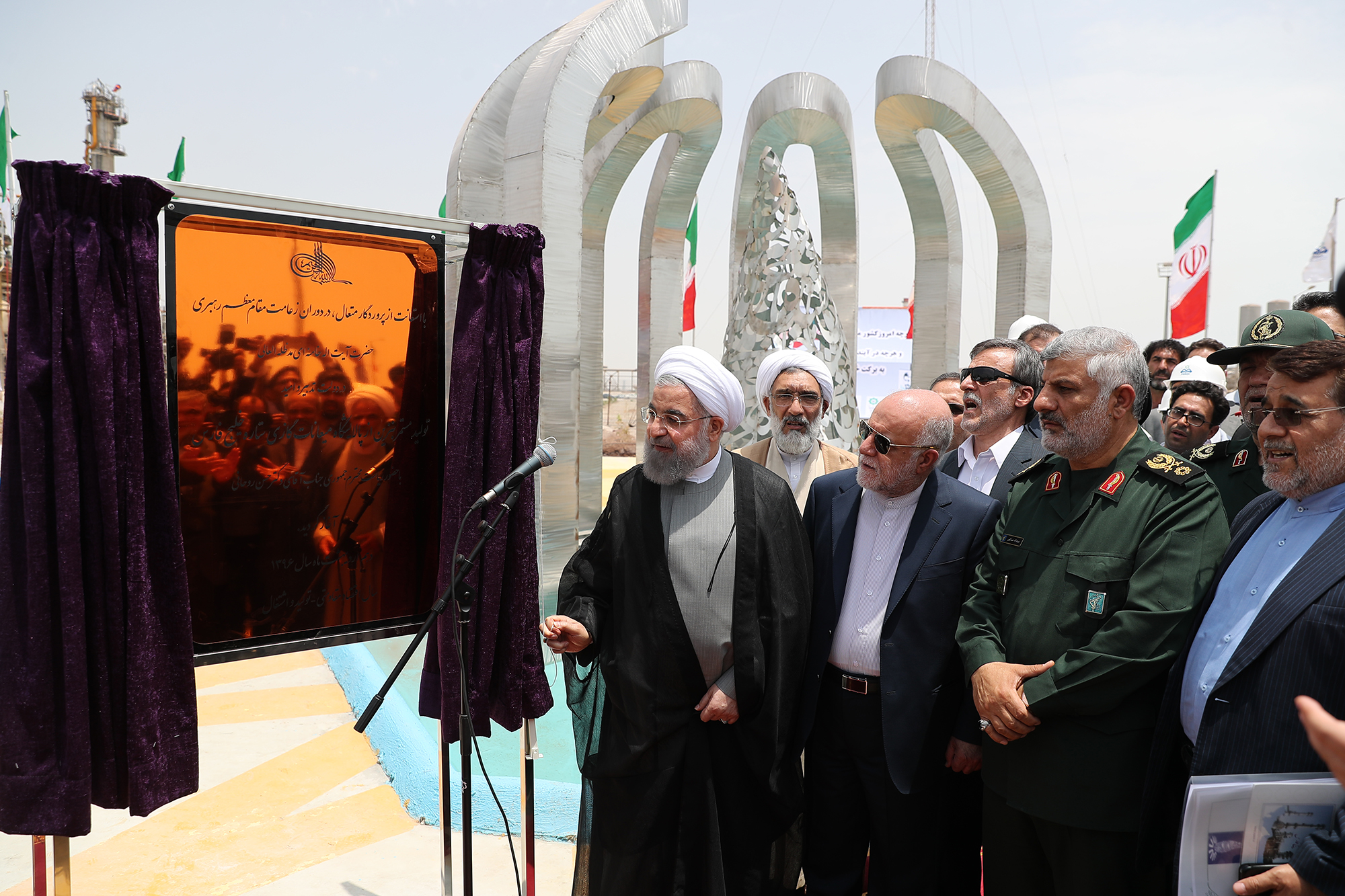 He was accompanied by Oil Minister Bijan Namdar Zanganeh and General Ebadollah Abdollahi, head of Khatam-al-Anbiya Construction Headquarters, an affiliate of the Islamic Revolutionary Guard Corps and the refinery's contractor.
