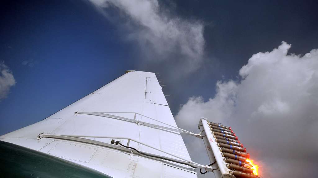 Cloud seeding chemicals may be dispersed by aircraft or drones or by dispersion devices on the ground (generators). For release by aircraft, silver iodide flares are ignited and dispersed as an aircraft or drone flies through a cloud.