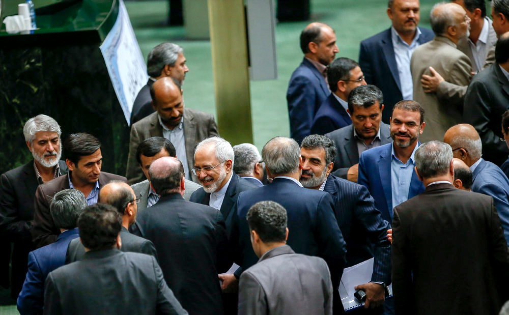 Foreign Minister Mohammad Javad Zarif and head of the Atomic Energy Organization of Iran Ali Akbar Salehi submitted the nuclear deal to the Majlis for review and briefed the lawmakers on some of its terms on Tuesday.
