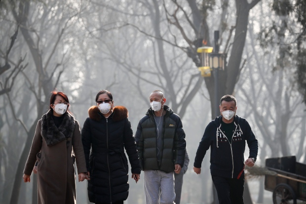 On Sunday, the number of children being taken to Beijing hospitals with breathing trouble soared. Photos showed waiting rooms crowded with parents carrying children who wore face masks.
