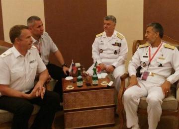 High-ranking Iranian and Russian naval officials discussed ways of safeguarding security in the Caspian Sea through cooperation with littoral states.