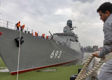 Two Russian warships docked at the Caspian Sea port of Anzali in northern Iran on Monday morning and were welcomed by Iranian officials and Russian envoys.